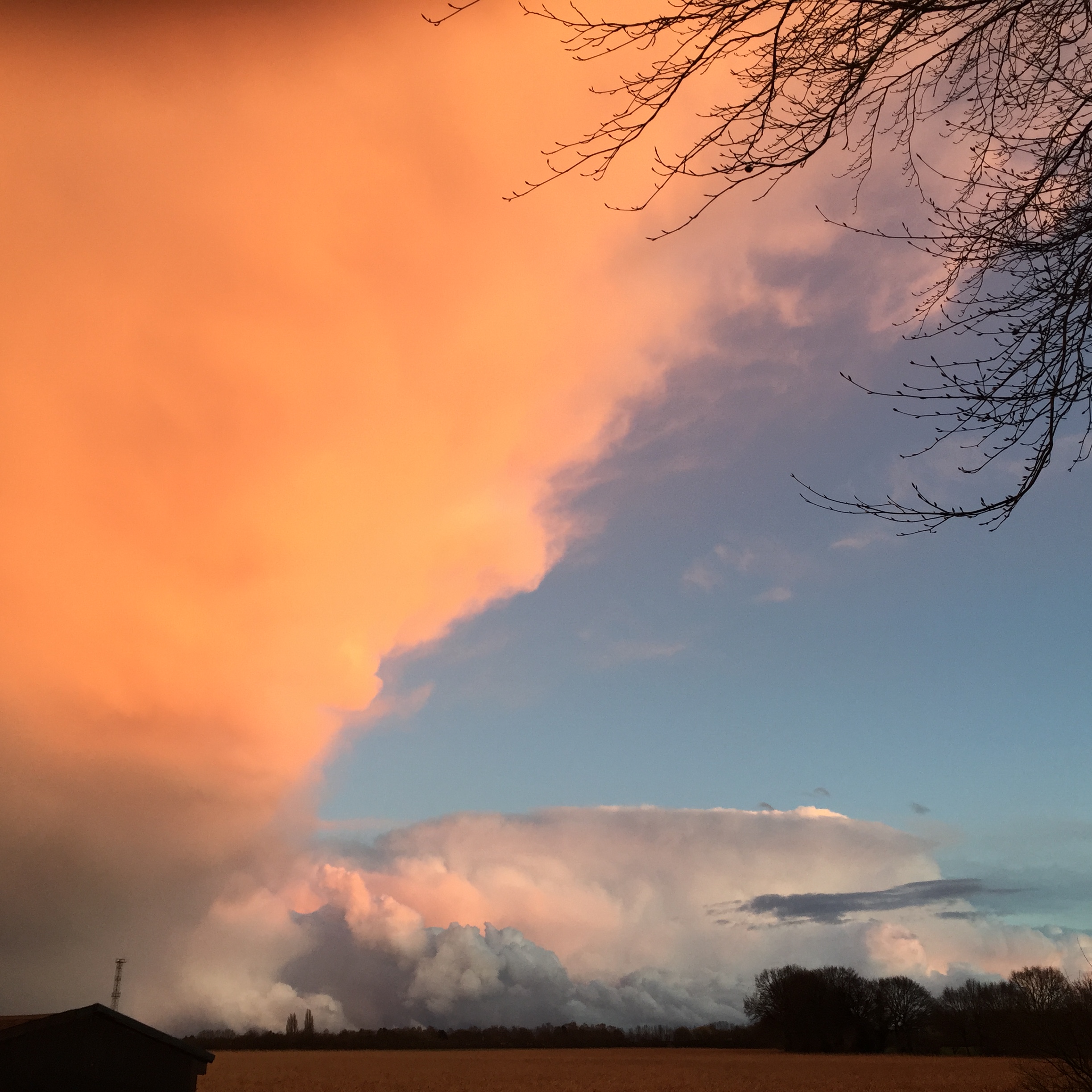 Ja, es war ein echtes Schauspiel, innerhalb kurzer Zeit wechselten die Wolkenkulissen! Begleitet von Sturm, Regen und Hagel.